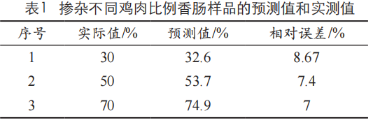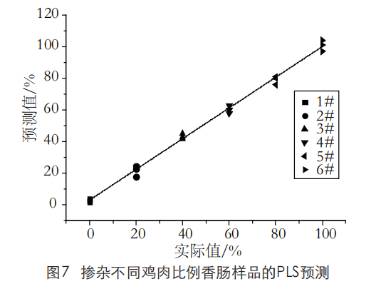 豬肉腸摻雜雞肉樣品的偏最小二乘回歸分析