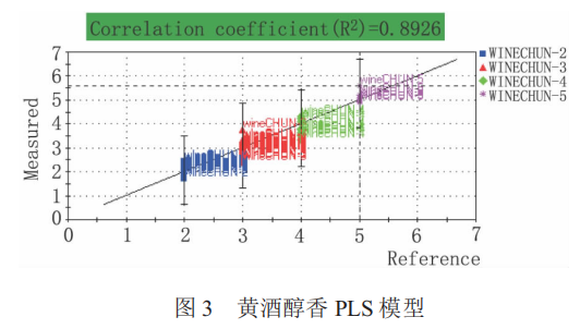 實驗結果顯示,從醇香、陳香、焦香這 3 個因素來對黃酒的香氣成分分別建立定量模型,進行交互驗證后,準確率分別達到 97.3 %、97.3 %和 94.6 %。本項目研究是基于電子鼻技術替代人體嗅覺系統對黃酒的香氣進行系統化評價的定量模型,其預測結果重復性好、準確度高,可以在生產、 鑒評過程中替代品酒員而應用于黃酒的香氣感官品評,有效減少人為誤差。