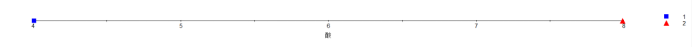 圖4 樣品的滋味分布圖(注:1為常溫奶;2為鮮牛奶)