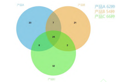 圖3 3個(gè)不同市售霉莧菜梗揮發(fā)性成分韋恩圖