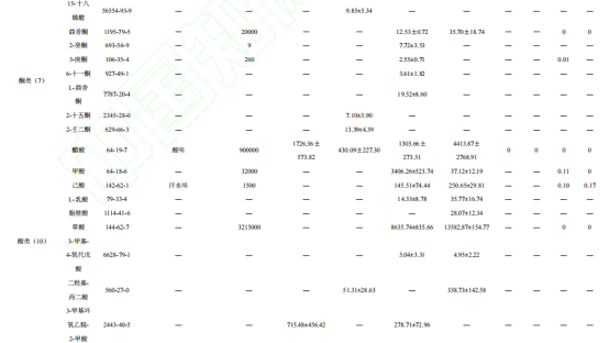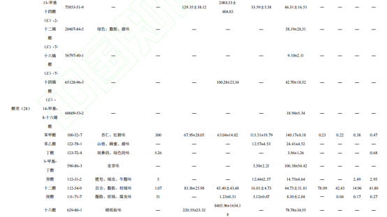 表3 手撕牛肉干揮發性化合物種類、含量及OAV