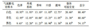 表2 3種色澤氣流膨化青稞米的感官評價結果