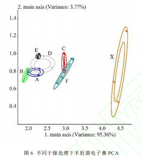 五、不同干燥處理下羊肚菌樣品電子鼻分析